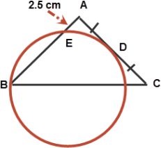 In a triangle ABC, AB = AC. A circle is drawn from vertex B such that it touches the side AC at D (where D is the mid-point of AC) and it cuts the side AB at E where AE = 2.5cm. Find the length of side AB.